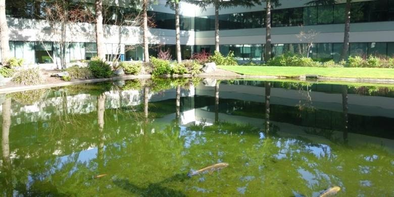 Di sisi kolam terdapat meja kayu, serta sebuah wilayah lapangan rumput yang tak seberapa besar. "Area ini biasanya digunakan untuk pesta karyawan, terutama di masa-masa awal Microsoft. Kami bisa mengadakan pesta barbekyu untuk momen istimewa, misalnya setelah peluncuran produk," kata Duffy.