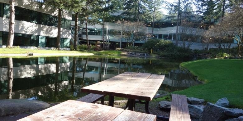 Dalam kunjungan ke kampus Redmond, rombongan jurnalis tak hanya digiring dari gedung ke gedung namun juga melintasi beberapa taman yang ada di antaranya. Salah satunya adalah sebuah area dekat Building 1 alias gedung pertama Microsoft.