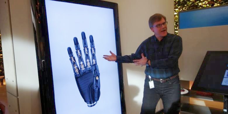 Edison Lab dikepalai Stevie Batiche, pria berambut panjang yang tampak selalu antusias menjelaskan alat-alat "ajaib" yang ada di lab itu. Dalam kunjungan ini, Batiche menjelaskan berbagai eksperimen layar yang dilakukan Microsoft.![]()